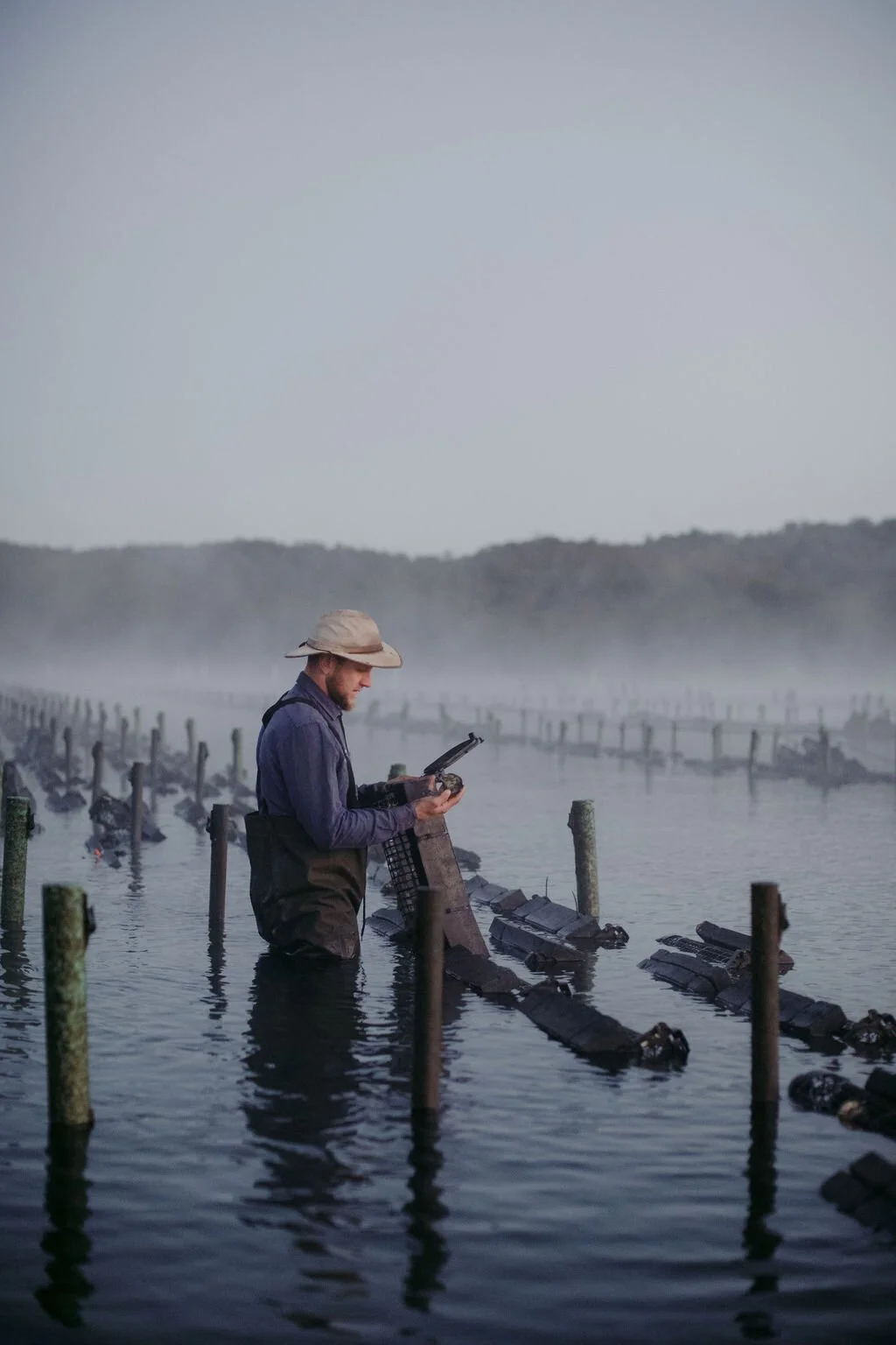 “I was so fresh. I had fresh eyes coming into the industry and was motivated to try new things and improve efficiencies as much as possible. I was looking into all the new things that were popping up rather than having a fully formed idea of how you had to farm oysters,” he says.