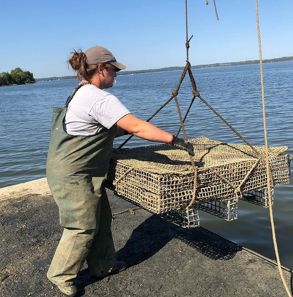 Tal grows the Eastern oyster (Crassostrea virginica) and farms them to develop a deep cup with a thicker shell, which is the desired aesthetic for the local market.