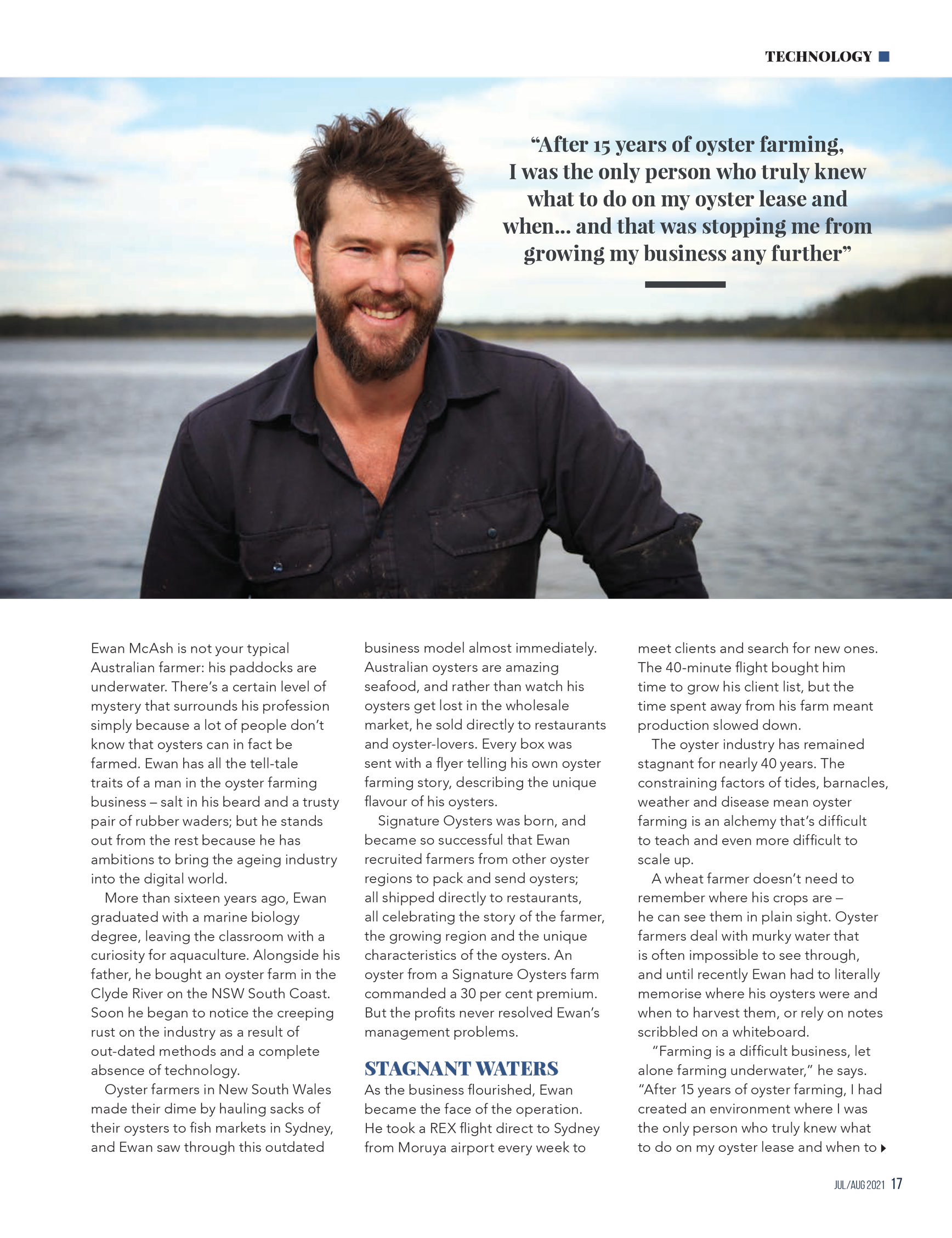 Will York of True Blue Magazine (Rex’s inflight magazine) caught up with our Founder and Farmer Ewan McAsh to discuss the digital transformation of oyster farming and how what started as a solution for his own farm is now shaking up the entire industry.