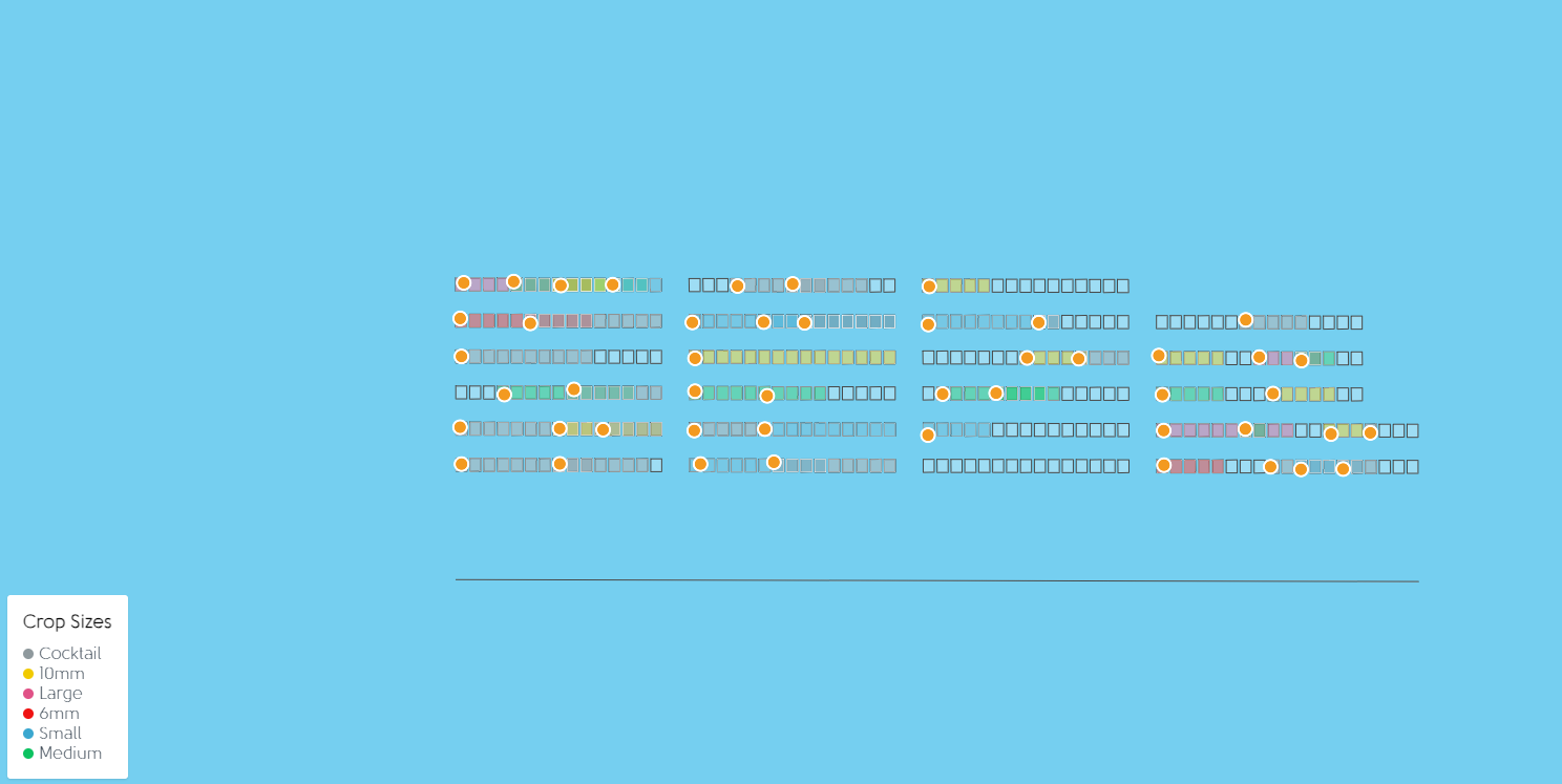 An image of the Oceanfarmr Crop Breakdown Dashboard - Showing the differing amounts of crop on hand broken down by Batch ID, size and even species if you have more then one.