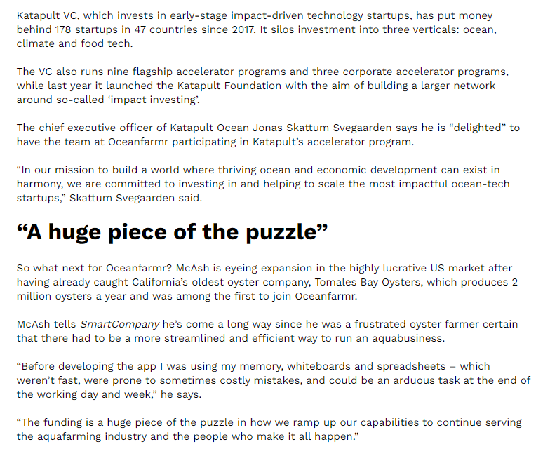 Bateman’s Bay tech startup completes $1.45 million raise for ‘Google Maps of the ocean’ platform AnnouncementArticle 23 Nov Written By Molly McAsh InvestmentFarm management softwareFarm FinanceOyster FarmsMussel FarmsSeaweed Farms Molly McAsh